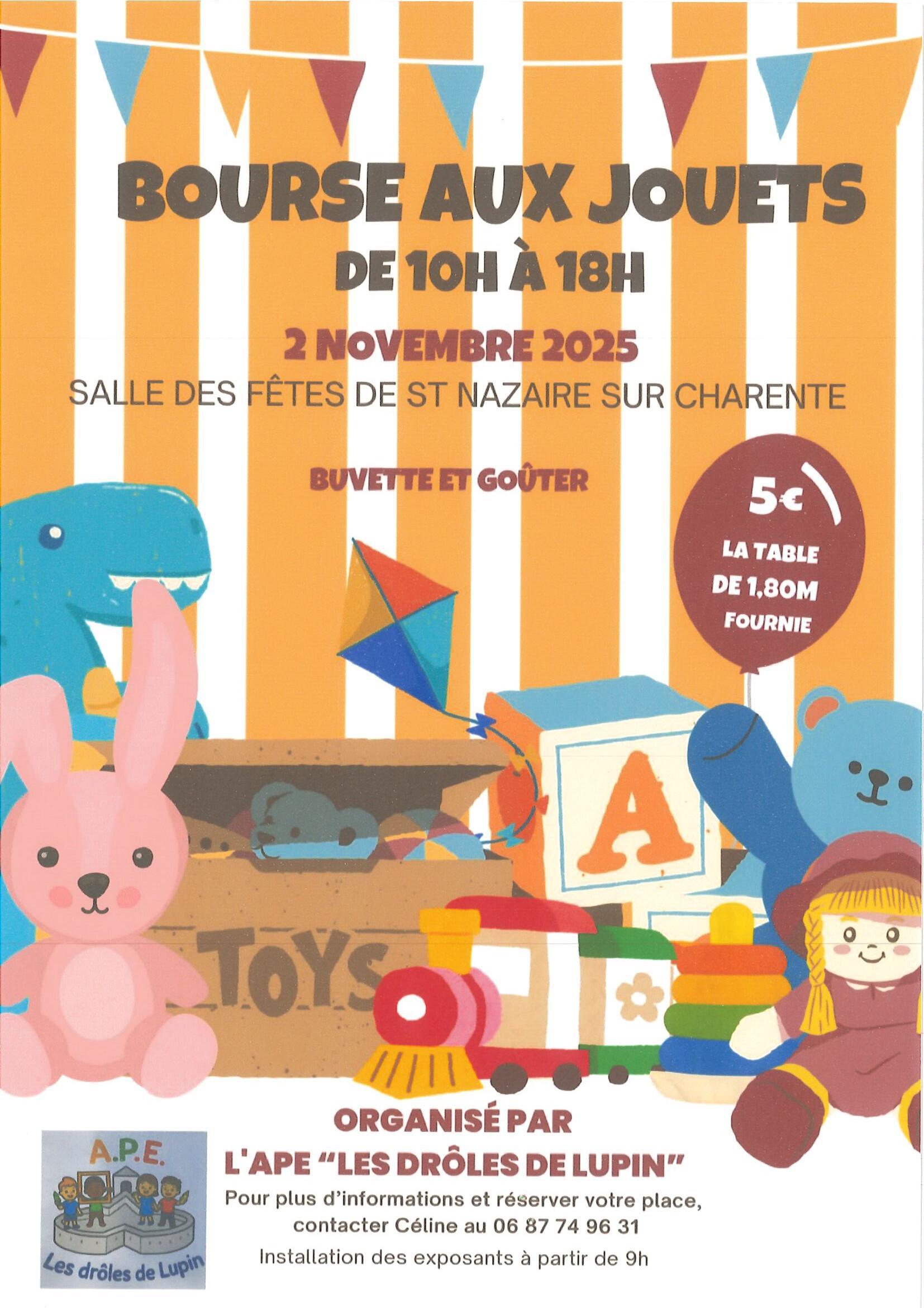 #SaintNazaireSurCharente #BourseAuxJouets #VideGrenierEnfants #SecondeMain #CharenteMaritime #LesDrolesDeLupin #Solidarité #Familles