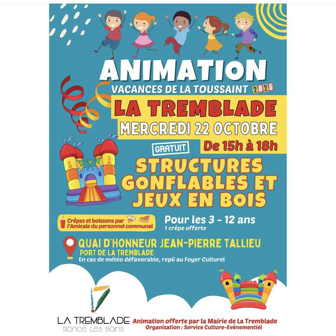 #VacancesToussaint #LaTremblade #AnimationEnfants #JeuxGonflables #CharenteMaritime #SortieEnFamille #Gratuit #CrêpesParty #PortDeLaTremblade #RonceLesBains