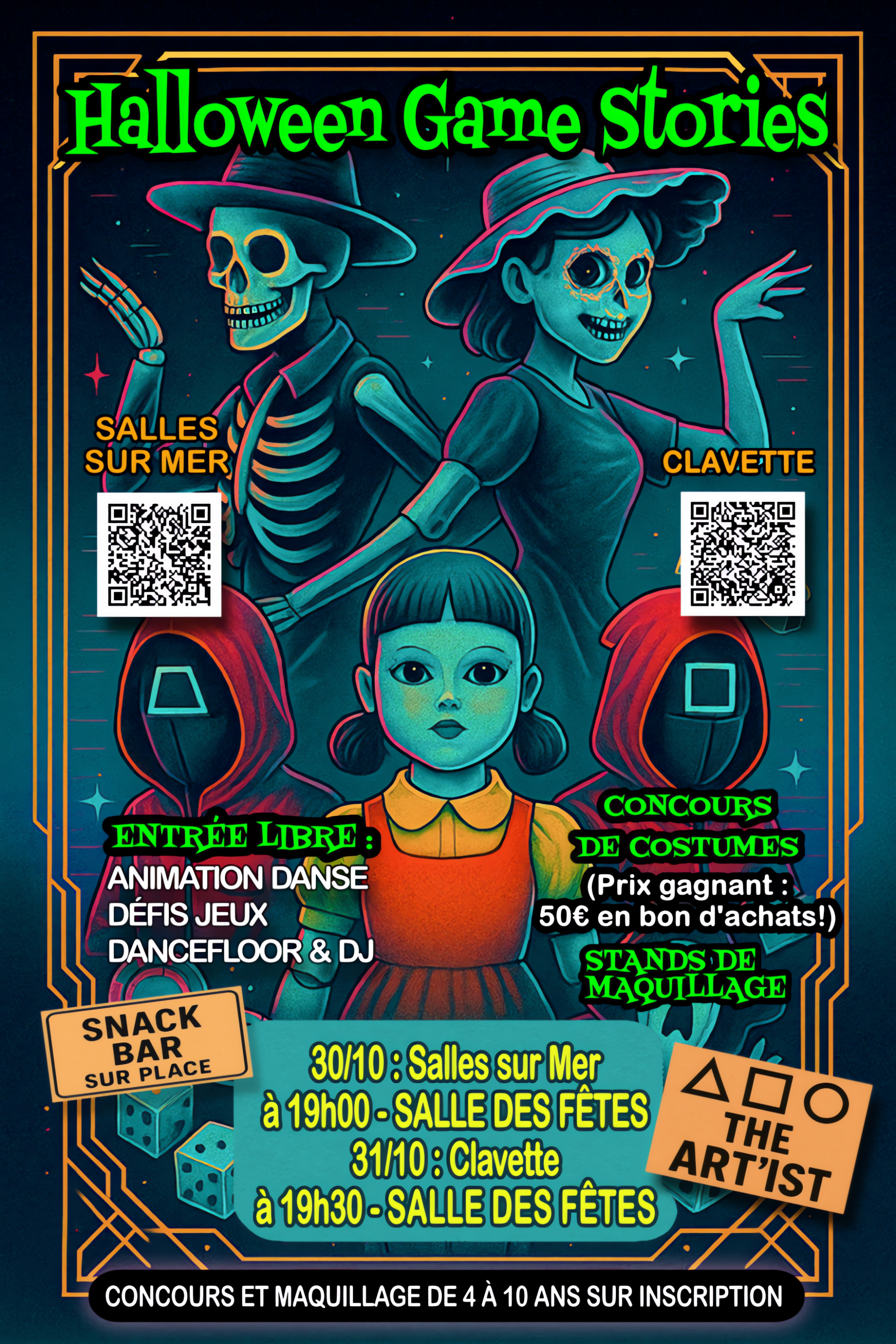 #HalloweenGameStories #SallesSurMer #Clavette #SoiréeHalloween #Chooibooh #Gratuit #Jeux #Maquillage #ConcoursCostume #DJSet #AmbianceDeFolie #CharenteMaritime #VacancesToussaint #AnimationJeunesse #TheArtist